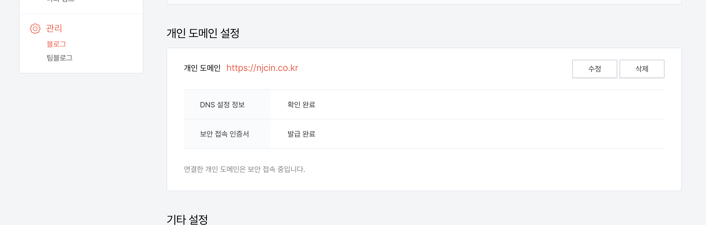 티스토리에서 블로그 관리 - 개인 도메인 설정