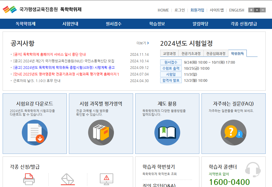 독학사 홈페이지